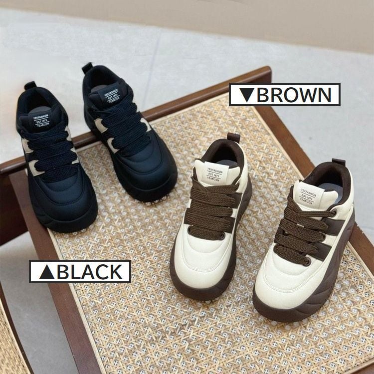 ▼コメント▼ 厚みのあるソールが印象的なボリュームスニーカーです。 約4㎝の厚底でさりげない脚長効果、美脚効果大の可愛い万能スニーカーで、カジュアルコーデの定番のスニーカーは季節問わずお使いいただけるのが嬉しいポイント♪ 存在感のあるデザインながらも軽やかな履き心地で、コーディネートの主役になる一足です。 ▼SIZE(約)▼ 22.5〜25.0cm 【35】= (22.0〜22.5cm) 【36】= (22.5〜23.0cm) 【37】= (23.0〜23.5cm) 【38】= (23.5〜24.0cm) 【39】= (24.0〜24.5cm) 【40】= (24.5〜25.0cm) ※甲広・甲高の方はワンサイズ大きめを推奨致します。 ヒール:約4.0cm ▼COLOR(カラー)▼ BROWN(ブラウン)・BLACK(ブラック) ▼MATERIAL(素材)▼ PU、RUBBER ▼REMARKS(備考)▼ 箱なし 【注意事項】 ■撮影時のライティング、ご覧になっている環境により実際の商品と色味が異なって見える場合がございます。ご了承の上お買い求め下さい。 ■甲広・甲高の方はワンサイズ大きめを推奨致します。 ■こちらの商品は海外商品の為、通常時7日〜14日前後で配送致します。 (天災、ウイルス等により配送が遅延する可能性がありますが、その際はご了承ください。) ■海外製品のためほつれや、糸飛び出しなどがある場合がございますが予めご了承ください。 ■予告なく生産中止・規格変更になる場合がございます。その際はご了承ください。