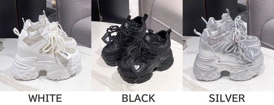 ▼コメント▼ ラインストーンが敷き詰められたきらきら厚底グリッタースニーカーです。 約10.5㎝の厚底で足元で抜群の存在感を発揮してくれる、機能性とデザイン性を兼ね備え、さりげない脚長効果、美脚効果大の可愛いさを演出してくれます。 カジュアルコーデの定番のスニーカーは季節問わずお使いいただけるのが嬉しいポイント♪ 歩きやすい上にトレンドを取り入れていただけるマストアイテムです。 ヘビロテ間違いなしのアイテムですね! ▼SIZE(約)▼ 22.0〜25.0cm 【34】= (21.5〜22.0cm) 【35】= (22.0〜22.5cm) 【36】= (22.5〜23.0cm) 【37】= (23.0〜23.5cm) 【38】= (23.5〜24.0cm) 【39】= (24.0〜24.5cm) 【40】= (24.5〜25.0cm) ※甲広・甲高の方はワンサイズ大きめを推奨致します。 インヒール:約2.5㎝ ヒール高:約8.0cm ▼COLOR(カラー)▼ WHITE(ホワイト)・BLACK(ブラック)・SILVER(シルバー) ▼MATERIAL(素材)▼ PU、RUBBER ▼REMARKS(備考)▼ 箱なし 【注意事項】 ■撮影時のライティング、ご覧になっている環境により実際の商品と色味が異なって見える場合がございます。ご了承の上お買い求め下さい。 ■甲広・甲高の方はワンサイズ大きめを推奨致します。 ■こちらの商品は海外商品の為、通常時7日〜14日前後で配送致します。 (天災、ウイルス等により配送が遅延する可能性がありますが、その際はご了承ください。) ■海外製品のためほつれや、糸飛び出しなどがある場合がございますが予めご了承ください。 ■予告なく生産中止・規格変更になる場合がございます。その際はご了承ください。