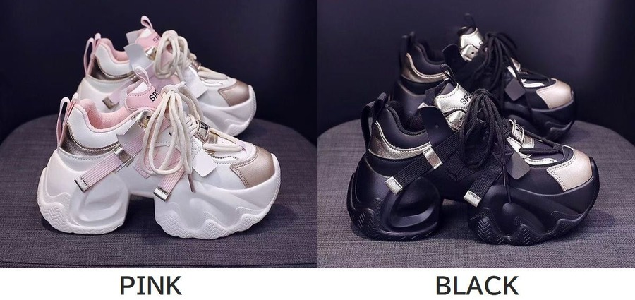 ▼コメント▼ 足元で抜群の存在感を発揮してくれる、機能性とデザイン性を兼ね備えた厚底スニーカーです。 約7.5㎝の厚底でボリューミーなシルエットが、さりげない脚長効果、美脚効果大の可愛いさを演出してくれます。 カジュアルコーデの定番のスニーカーは季節問わずお使いいただけるのが嬉しいポイント♪ シンプルで合わせやすいデザイン、どんなコーデにも相性が抜群です。 歩きやすい上にトレンドを取り入れていただけるマストアイテムです。 ヘビロテ間違いなしのアイテムですね! ▼SIZE(約)▼ 22.5〜25.0cm 【35】= (22.0〜22.5cm) 【36】= (22.5〜23.0cm) 【37】= (23.0〜23.5cm) 【38】= (23.5〜24.0cm) 【39】= (24.0〜24.5cm) 【40】= (24.5〜25.0cm) ※甲広・甲高の方はワンサイズ大きめを推奨致します。 ヒール高:約7.5cm ▼COLOR(カラー)▼ PINK(ピンク)・BLACK(ブラック) ▼MATERIAL(素材)▼ PU、RUBBER ▼REMARKS(備考)▼ 箱なし 【注意事項】 ■撮影時のライティング、ご覧になっている環境により実際の商品と色味が異なって見える場合がございます。ご了承の上お買い求め下さい。 ■甲広・甲高の方はワンサイズ大きめを推奨致します。 ■こちらの商品は海外商品の為、通常時7日〜14日前後で配送致します。 (天災、ウイルス等により配送が遅延する可能性がありますが、その際はご了承ください。) ■海外製品のためほつれや、糸飛び出しなどがある場合がございますが予めご了承ください。 ■予告なく生産中止・規格変更になる場合がございます。その際はご了承ください。